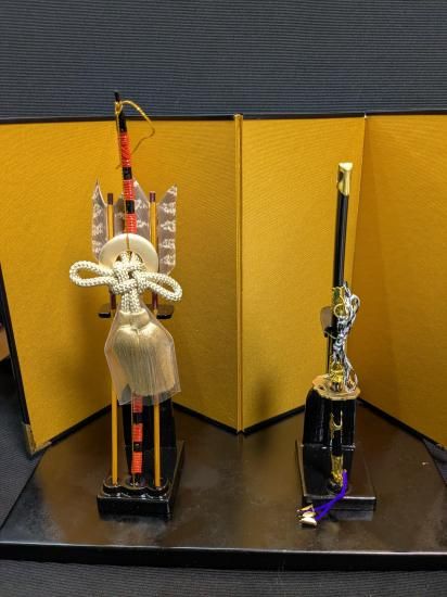 サイズ:弓 5×4.5×h22cm 太刀 5×4.5×h19.5cm
