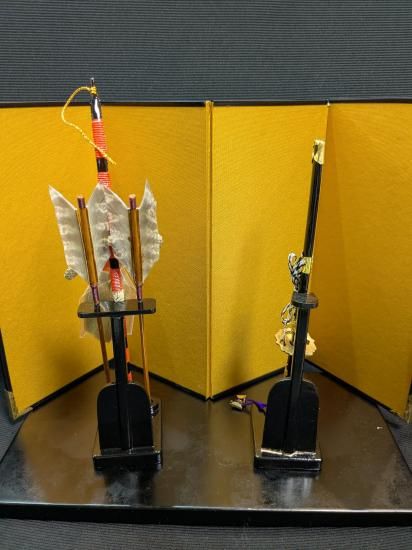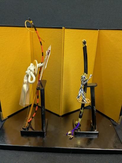 弓太刀セット。若武者や兜の横に飾れば、作品がより引き立ちます。